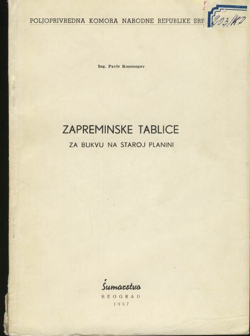 Pavle Kosogonov - Zapreminske tablice za bukvu na staroj planini