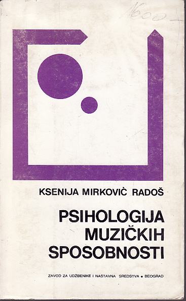 3. KSENIJA MIRKOVIĆ RADOŠ - PSIHOLOGIJA MUZIČKIH SPOSOBNOSTI , BEOGRAD 1983. 250 STR. MEKI UVEZ................45 KUNA