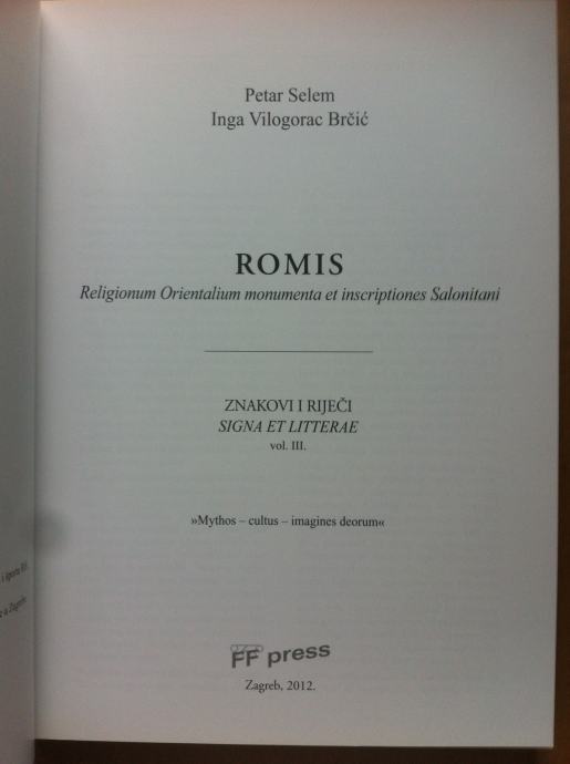 Petar Selem, Inga Vilogorac Brčić – Romis: Religionum Orientalium monumenta et inscriptiones Salonitani
