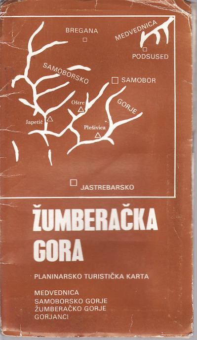 10. ZLATKO SMERKE : ŽUMBERAČKA GORA - PLANINARSKO TURISTIČKA KARTA - MAPA SADRŽI 2 KARTE NA PREKLOP DIMENZIJA 70 X 49 CM + PROSPEKT ŠPILJE VETERNICA 1. KARTA : ŽUMBERAČKA GORA - ZAPADNI DIO : USKOČKA GORA - GORJANCI 2. KARTA : ŽUMBERAČKA GORA - ISTOČNI DIO : SAMOBORSKO GORJE...……………………………….40 kuna