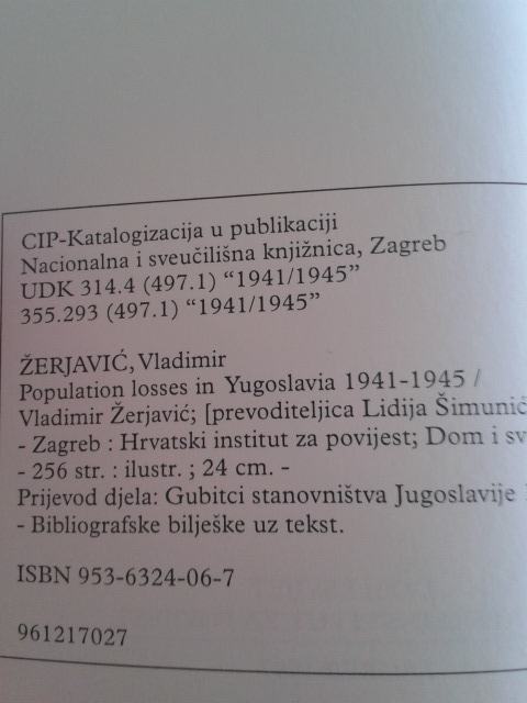 Population losses in Yugoslavia 1941-1945 V Žerjavić