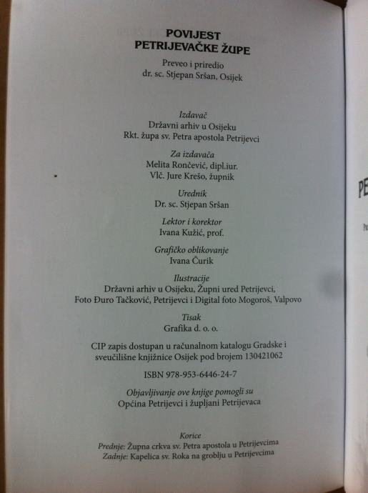 Nakladnik: Državni arhiv u Osijeku, Rkt. župa sv. Petra apostola Petrijevci