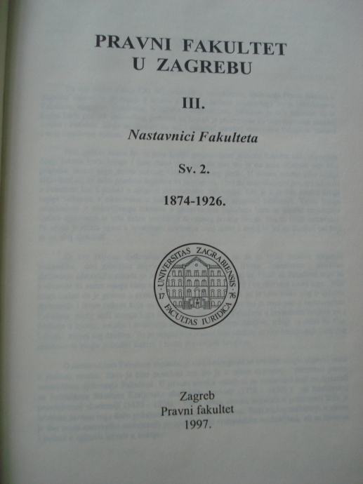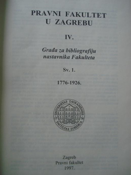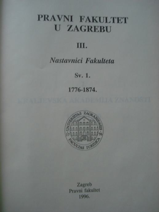 Pravni fakultet u Zagrebu 1776 -1996 5 knjiga