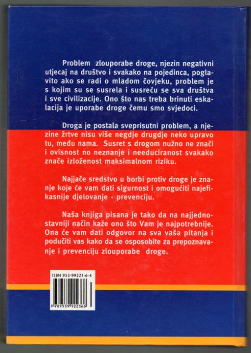 Priručnik o vrstama droga, zlouporabi te društvenom kontekstu koji pogoduje širenju ove negativne pojave. Namijenjen je roditeljima, učiteljima i učenicima te svima koji sudjeluju u odgoju djece i prate aktualne društvene pojave. Knjiga je jednostavno pisana i nije opterećena stručnim činjenicama. Ona nudi neka osnovna znanja i poduku kako se osposobiti za prepoznavanje i prevenciju zlouporabe droge.