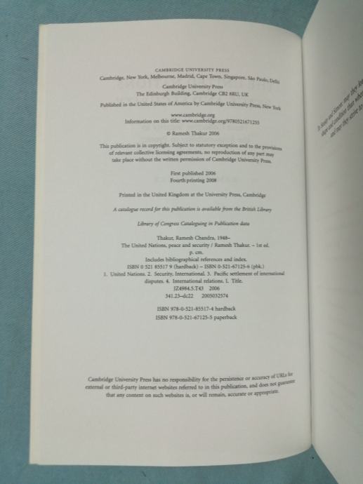 Ramesh Thakur – The United Nations, Peace and Security : Ftom Collective Security to the Responsibility to Protect
