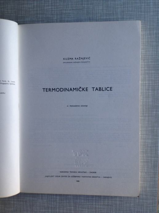 PRODAJEM KNJIGU „TERMODINAMIČKE TABLICE“
