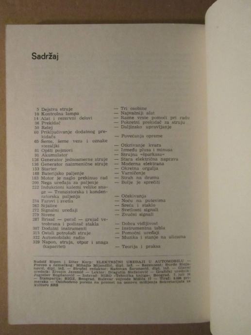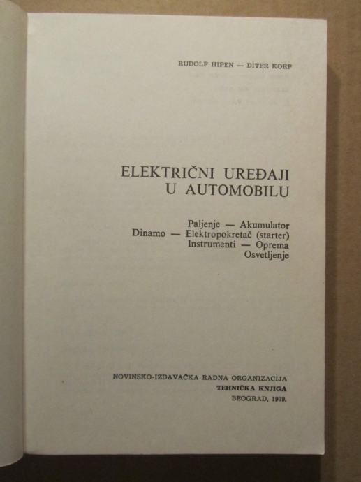 Rudolf Hipen, Diter Korp – Električni uređaji u automobilu. Paljenje – Akumulator – Dinamo – Elektropokretač (starter) – Instrumenti – Oprema – Osvjetljenje