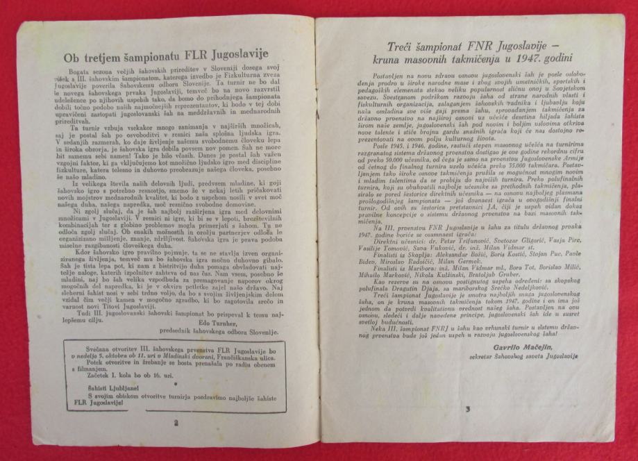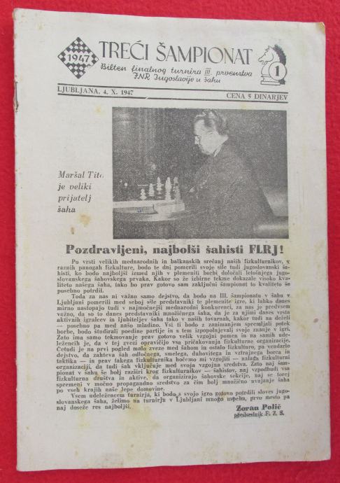 ŠAH - ŠAHOVSKI BILTEN, br. 1, 1947. Ljubljana, Slovenija, prvenstvo YU
