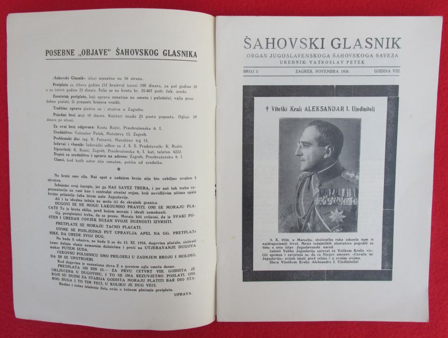 ŠAH - ŠAHOVSKI GLASNIK, Kraljevina Jugoslavija, broj 3, 1934.
