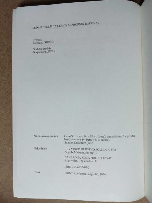 Nakladnik: Hrvatsko društvo folklorista, Nakladna kuća „Dr. Feletar“