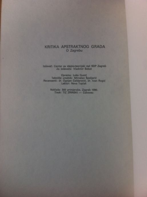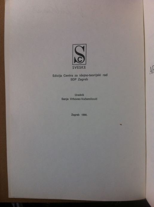 Nakladnik: Centar za idejno-teorijski rad SDP Zagreb