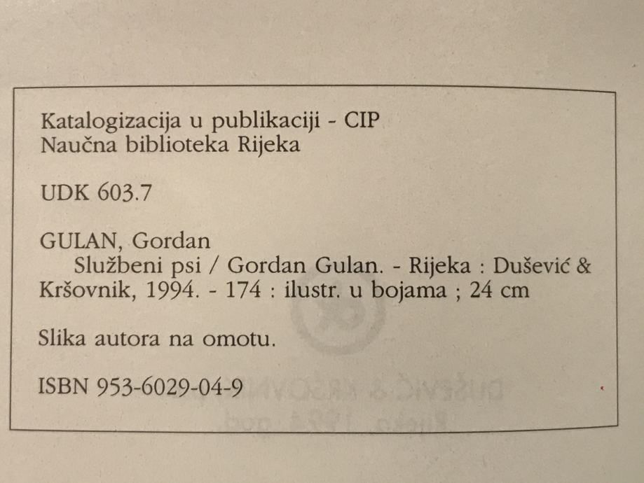 Službeni psi / Gordan Gulan / 174 str iz 1994.