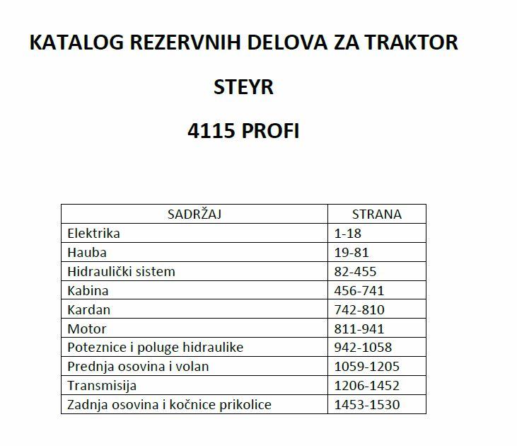 1530 strana sa slikama sklopova i kataloškim brojevima dijelova.