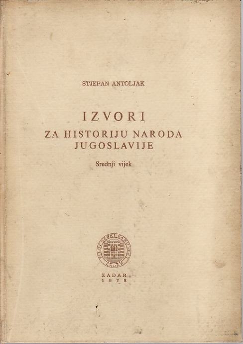 STJEPAN ANTOLJAK: IZVORI ZA HISTORIJU NARODA JUGOSLAVIJE SREDNJI VIJEK