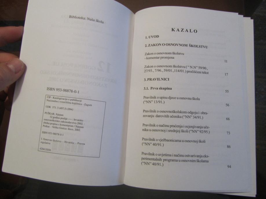 Podnaslov: Hrvatsko osnovnoškolsko zakonodavstvo 2002. (Zbirka propisa s komentarom)
