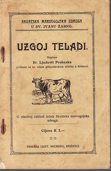 4. LJUDEVIT PROHASKA , UZGOJ TELADI , KRIŽEVCI 1919. MEKI UVEZ , 19 CM , 41 STR...........................................100 KUNA