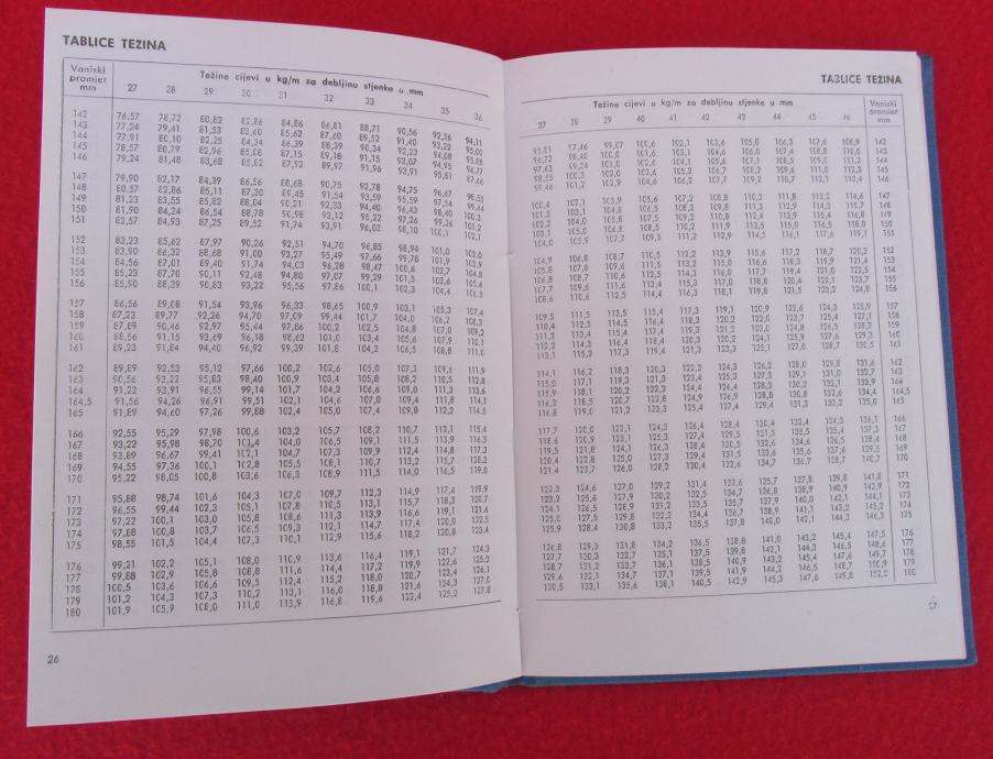 TABLICE TEŽINA ZA ČELIČNE CIJEVI - ŽELJEZARA SISAK