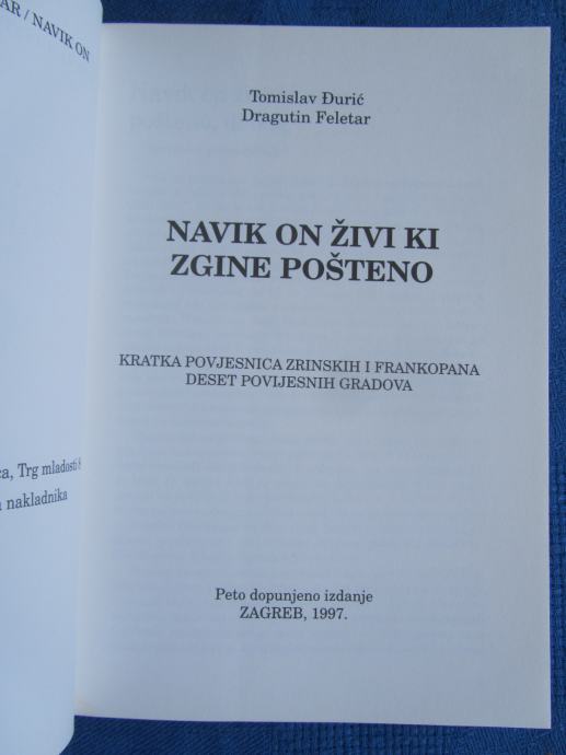 Tomislav Đurić, Dragutin Feletar – Navik živi ki zgine pošteno. Kratka povjesnica Zrinskih i Frankopana. Deset povijesnih gradova