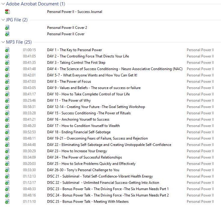 DISC 23 - Bonus Power Talk - The Driving Force -The Six Human Needs Part 1 DISC 24 - Bonus Power Talk - The Driving Force -The Six Human Needs Part 2 DISC 25 - Bonus Power Talk - Meeting With Masters