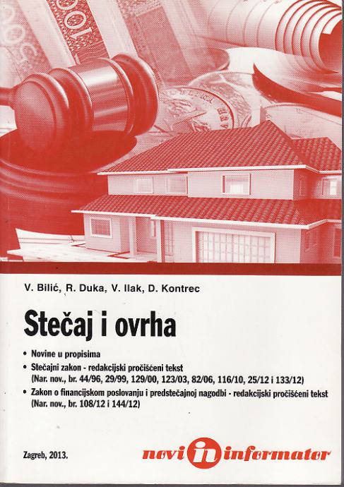 Stečajni zakon (Nar. nov., br. 44/96, 29/99, 129/00, 123/03, 82/06, 116/10, 25/12 i 132/12) mijenjan je dosad sedam puta. Svrha izmjena i dopuna uvijek je bila ubrzanje stečajnog postupka i smanjenje troškova tog postupka. I ove posljednje izmjene i dopune (Nar. nov., br. 132/12) imaju takvu svrhu. Međutim, neposredan povod za njihovo donošenje je donošenje Zakona o financijskom poslovanju i predstečajnoj nagodbi koji omogućava sanaciju i financijsko restrukturiranje nelikvidnog i insolventnog dužnika. S tim u svezi interveniralo se u dijelu Stečajnog zakona koji regulira stečajni plan i Zakonom je ponovno predviđena mogućnost prodaje cjelokupne imovine stečajnog dužnika. Osim općeg pregleda svih novina u Stečajnom zakonu, sadržanih u njegovoj zadnjoj Noveli, o čemu piše dr. sc. Vanja Bilić, pomoćnik ministra pravosuđa Republike Hrvatske i razmatranja modificiranog instituta stečajni plan i ponovno uvedenog instituta prodaje imovine dužnika kao cjeline, o čemu piše Renata Duka, dipl. iur., načelnica Sektora za propise građanskog i trgovačkog prava u Ministarstvu pravosuđa Republike Hrvatske, analiziraju se i sličnosti, odnosno razlike između ovršnog i stečajnog postupka te utjecaj otvaranja stečajnog postupka na postupak ovrhe u kojem sudjeluje stečajni dužnik kao ovršenik. Osim stečajnog postupka u knjizi su obrađene još dvije vrlo aktualne teme. Prva se odnosi na ovrhu na novčanim sredstvima koja se provodi putem Financijske agencije. Takav način ovrhe propisan je Zakonom o provedbi ovrhe na novčanim sredstvima (Nar. nov., br. 91/10 i 122/12) i Ovršnim zakonom (Nar. nov., br. 112/12). Novost je da se ovrha na novčanim sredstvima može provoditi izravnom naplatom na temelju, u Zakonu određenih, ovršnih isprava. Time se po prvi put u ovršnom postupku napušta faza određivanja ovrhe i time bitno skraćuje ovršni postupak. Druga aktualna tema koja se obrađuje je predstečajna nagodba, predviđena Zakonom o financijskom poslovanju u predstečajnoj nagodbi (Nar. nov., br. 108/12 i 144/12). Tim Zakonom odvojio se dio stečajnog postupka koji se odnosio na stečajni sanacijski plan iz sudskog stečajnog postupka u upravni postupak. Time se željelo postupak sanacije i restrukturiranja nelikvidnog i insolventnog dužnika učiniti bržim, ekonomičnijim i djelotvornijim te kroz taj postupak izbjeći njegov stečaj i omogućiti nastavak rada. O ovrsi na novčanim sredstvima na računima i predstečajnom nagodbom piše Vinka Ilak, dipl. iur., samostalni savjetnik u Financijskog agenciji. Prikazi i komentari, obrazloženja i nužna objašnjenja dana kroz autorske radove tiskane u ovoj knjizi, služe za otklanjanje nedoumica koje se u praksi javljaju, ali i kao stručni doprinos za daljnje unapređenje insolvencijskog i ovršnog prava. Uz autorske stručne radove, kao prilozi u knjizi dani su pročišćeni tekstovi Stečajnog zakona i Zakona o financijskom poslovanju i predstečajnoj nagodbi.