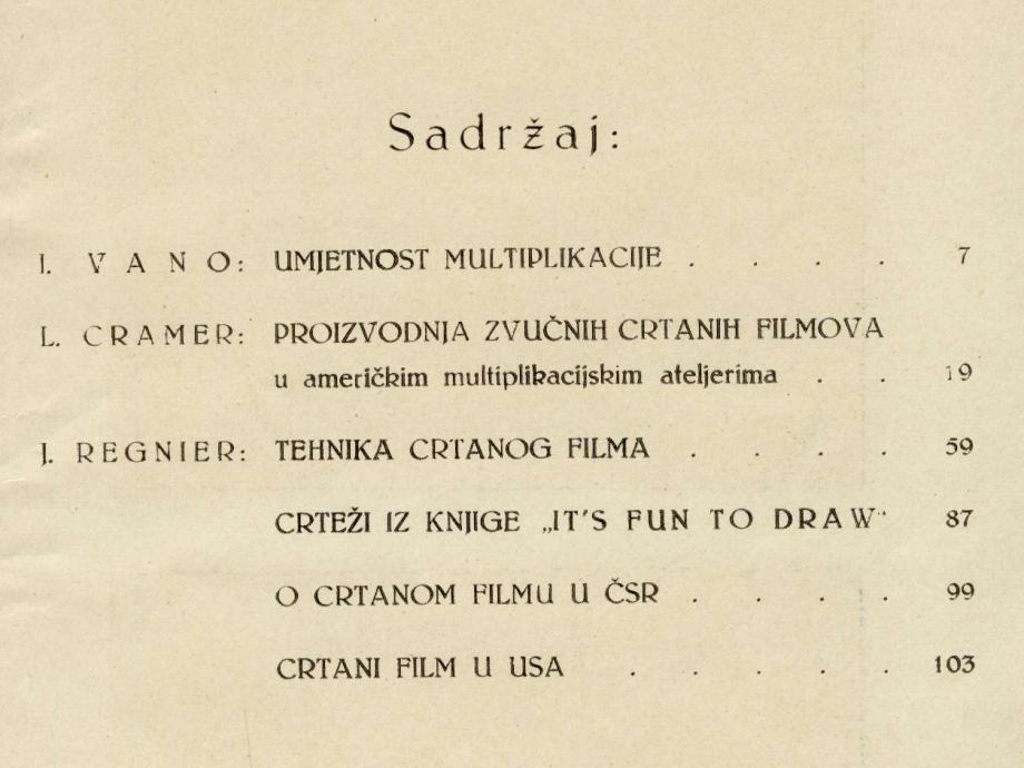 Prijevod djela: 1. Iskusstvo muljtiplikaciji / I. Vano. 2. Proizvodstvo zvukovih risovannih filjmov v amerikanskih muljtiplikacionnih masterskih / L. Cramer. 3. La technique du dessin anime / J. Regnier.