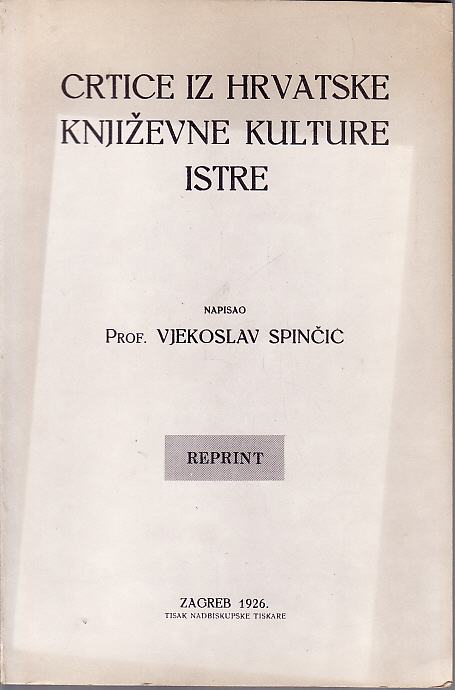 VJEKOSLAV SPINČIĆ : CRTICE IZ HRVATSKE KNJIŽEVNE KULTURE ISTRE Reprint