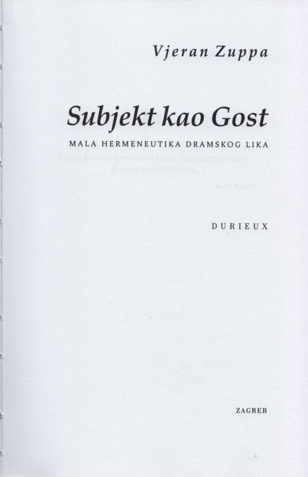 Vjeran Zuppa – Subjekt kao Gost. Mala hermeneutika dramskog lika