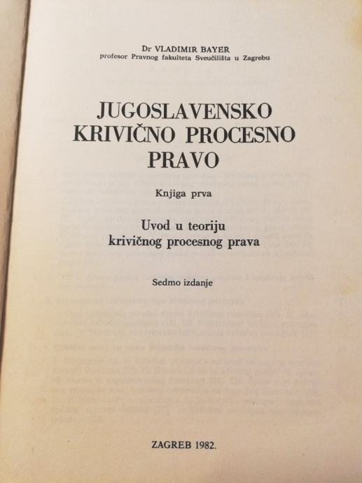 Vladimir Bayer: Jugoslavensko krivično procesno pravo- knjiga prva PFZ