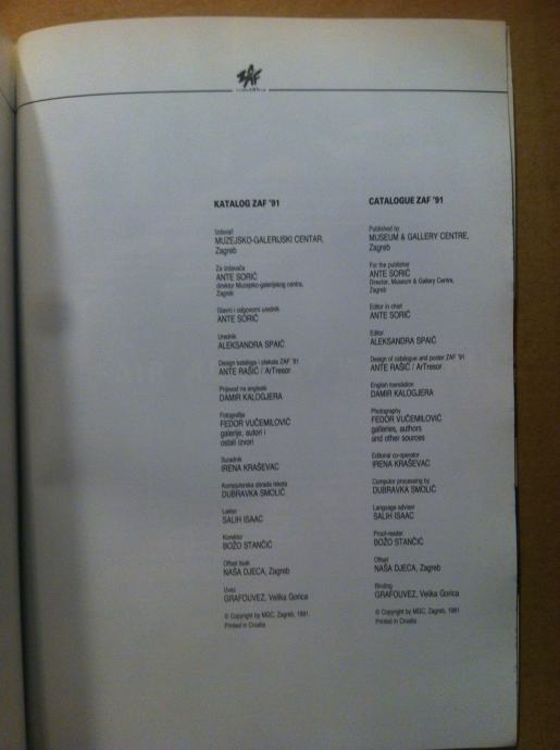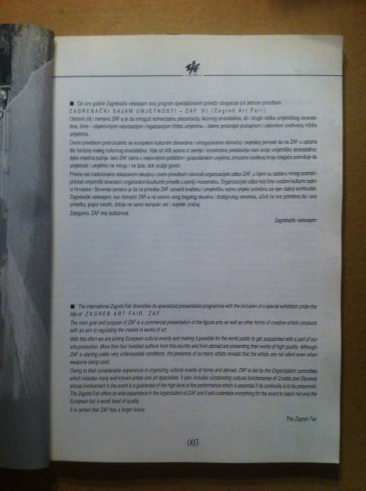 Zagreb ART Fair 16.- 22. rujna 1991. Zagrebački sajam umjetnosti (S46)