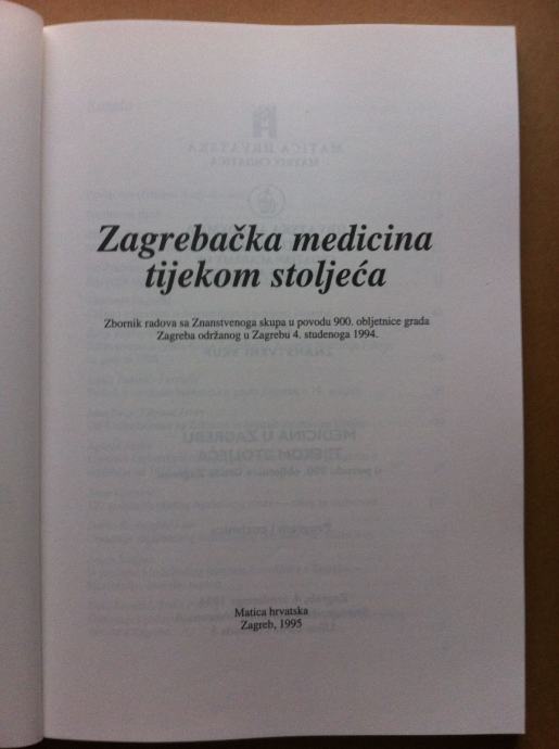 Zagrebačka medicina tijekom stoljeća. Zbornik radova sa Znanstvenoga skupa u povodu 900. obljetnice grada Zagreba održanog u Zagrebu 4. studenoga 1994.