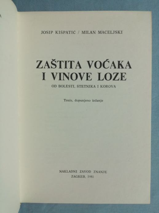 Josip Kišpatić i Milan Maceljski – Zaštita voćaka i vinove loze od bolesti, štetnika i korova