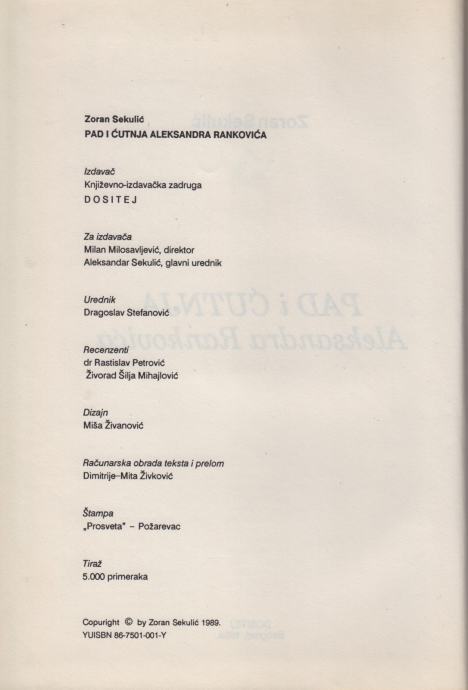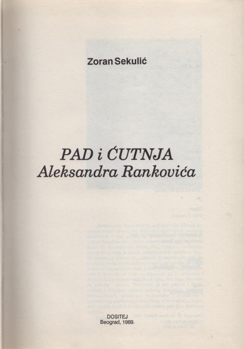 Zoran Sekulić – Pad i ćutnja Aleksandra Rankovića