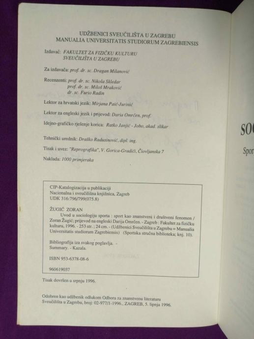Zoran Žugić – Uvod u sociologiju sporta : Sport kao znanstveni i društveni fenomen
