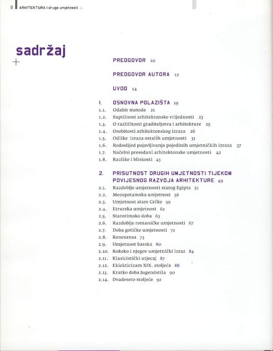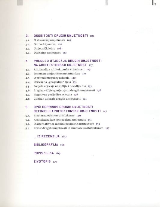 Istraživanju arhitektonske umjetnosti može se prići na više načina. U ovom djelu autor je izabrao onaj najteži – nepristran način,izbjegavši onu magičnu fascinaciju s kojom se susreće svaki analitičar koji je pokuša tumačiti. Autor je arhitekturu nastojao hipotetski „ogoliti” do njezine srži kako bi mogao imati bolji uvid u stvarnu strukturu njezine ostvarene forme. Jer svaka je arhitektonska forma kompleksan uradak,koji čini njezin nosivi sklop, zatvarajuću opnu i funkcionalni raspored obuhvaćenog prostora. Korišteni elementi smisleno su raspoređeni unutar arhitektonske kompozicije prema načelima sređivanja umjetničkih prostornih izraza. Sve je u konačnici zaogrnuto estetskim slojem koji arhitektonskom djelu daje prostorno-likovnu ekspresiju. Upravo je ta atribucija likovnosti kamen temeljac na kojem izrasta svaka prostorna kreacija. A ta likovnost, otkuda ona dolazi, gdje je njezin izvor? Zašto se arhitektura služi upravo takvim izrazom kojim od najranijih vremena kreirasvoju poruku? Odgovorima na ta pitanja bavi se upravo to djelo. Pađan arhitekturu prikazuje kao otvorenu disciplinu, a ne izoliranu i u sebe zatvorenu aktivnost koja mijenja svoj vanjski vidljiv pojavni oblik, ali u svojoj nutrini zadržava trajne vrijednosti umjetnički kreiranoga korisnoga prostora. Autor dolazi do defi nicije da je međusobna isprepletenost umjetnosti „prirodni” proces formiranja umjetničkog izraza, a da je arhitektura, kao najkompleksnija među njima, zapravo velika sintezasvih umjetničkih izraza iz koje se može iščitati osnovna svrha umjetničkog stvaralaštva. Autor je uz veliku upornost i strpljivost napravio pregled svih važnijih obilježja poznatijih djela arhitektonske umjetnosti, počevši od starovjekovnog Egipta pa do arhitekture 20. stoljeća. Djelo prenosi jasnu poruku da arhitekturu treba promatrati kao umjetnički „superorganizam” u kojem su brojni umjetnički izrazi u konačnici izbalansirani u simbioznu cjelinu. Djelo pridonosi novom analitičkom upoznavanju arhitekture i približavanju njezine kvalitativne strukture.