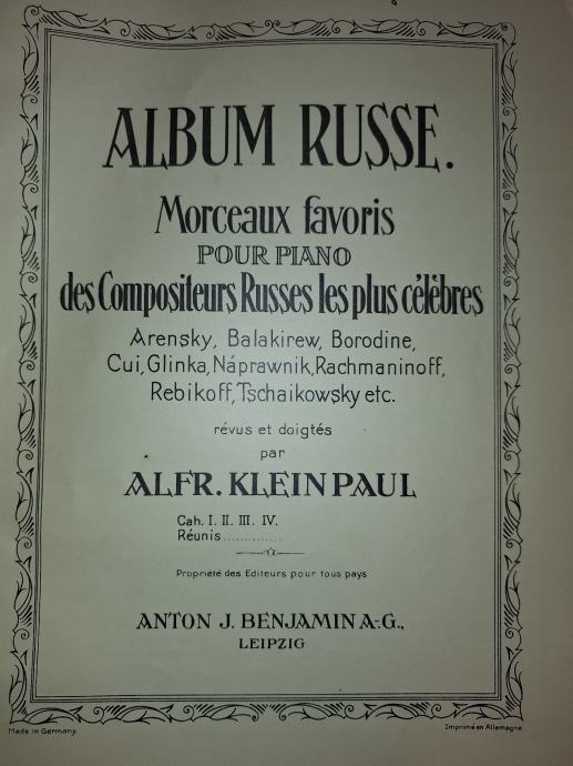 Notne zbirke pod nazivom "Album Russe", koju je uredio Alfr. Kleinpaul. Zbirka sadrži omiljene skladbe najpoznatijih ruskih skladatelja za klavir.