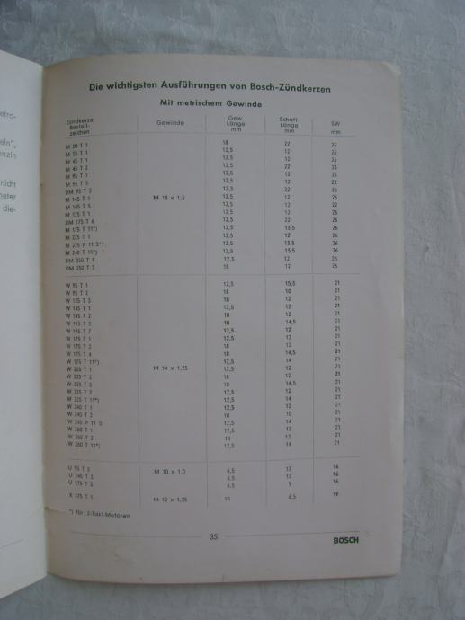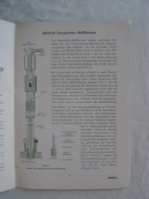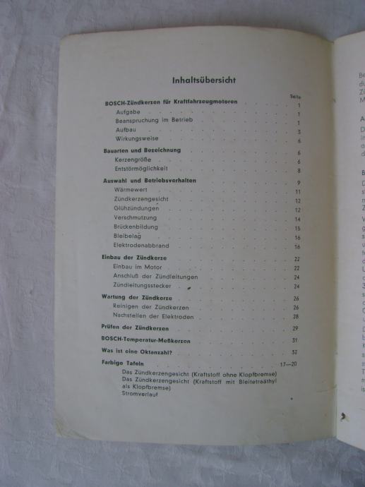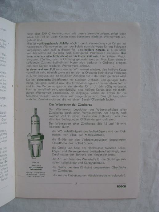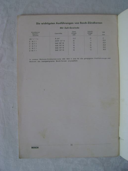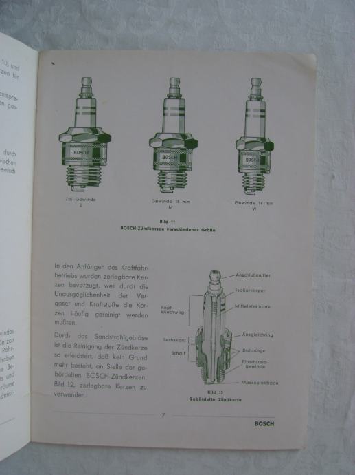Bosch - Zundkerzen fur Kraftfahrzeugmotoren - Boschova brošura sa svim informacijama o svjećicama, izdavač Robert Bosch GMBH, Stuttgart, nema godine izdanja, 15 x 21 cm, 36 stranica, ilustrirano.