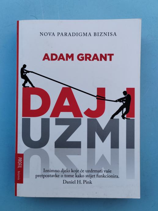 Knjiga Daj i uzmi revolucionarni je pogled na to zašto naše interakcije s drugima predstavljaju ključ uspjeha. Generacijama smo se fokusirali na pojedinačne pokretače uspjeha: strast, naporan rad, talent i sreću. Ali u današnjem dramatično rekonfiguriranom svijetu, uspjeh sve više ovisi o tome kako komuniciramo s drugima. U knjizi Daj i uzmi Adam Grant ispituje iznenađujuće sile koje oblikuju zašto se neki ljudi penju na vrh ljestvice uspjeha, dok drugi tonu na dno. Hvaljen od društvenih znanstvenika, poslovnih teoretičara i korporativnih vođa, knjiga otvara pristup poslu, interakcijama i produktivnosti koji nije ništa manje od revolucionarnog. “Davatelji”, “Uzimači” i “Uparivači” tri su temeljna stila interakcije s drugima. “Uzimači” koriste druge ljude isključivo za vlastitu korist. “Davatelji” se usredotočuju na djelovanje u interesu drugih, čak i kada dobrobiti za druge premašuju troškove za njih same. “Uparivači” djeluju na principu poštenja tražeći reciprocitet. Koji vas najbolje opisuje u poslu? Davanje može biti snažnije i manje opasno nego što većina vjeruje. “Davatelji preokreću popularni plan da se prvo uspiju, a kasnije vraćaju, povećavajući mogućnost da su oni koji prvi daju često u najboljem položaju za uspjeh kasnije”, objašnjava Adam Grant. Uspjeh se manje temelji na sirovom talentu ili sposobnosti, a više na strategijama koje davatelji koriste. Darivatelji nisu nužno ljubazni i nisu nužno altruisti. U interakciji koja je isključivo pobjeda i poraz, davanje se rijetko isplati. Većina života nije pobjeda i poraz. Ljudi koji odaberu davanje kao svoj primarni stil uzajamnosti na kraju ubiru nagrade. Jedan od razloga zašto je darivateljima potrebno vrijeme da uspiju je taj što je potrebno vrijeme da darivatelji izgrade dobru volju i povjerenje te uspostave reputaciju i odnose koji povećavaju njihov uspjeh.