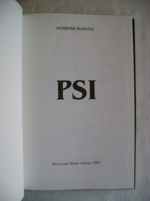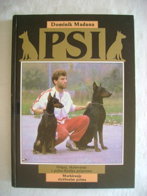 Dominik Maduna - Psi * Odgoj, školovanje i psihofizička priprema * Markiranje službenim psima - prvo izdanje, vlastita naklada autora, Slavonski Brod 1991. godine, 17 x 24 cm, tvrdi uvez, 237 stranica, bogato ilustrirano.