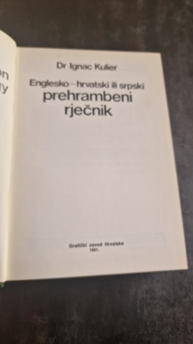 Prodajem englesko-hrvatski ili srpski prehrambeni rječnik, dr. Ignac Kulier. Grafučki zavod Hrvatske, 1981.godine, Zagreb., str.426.