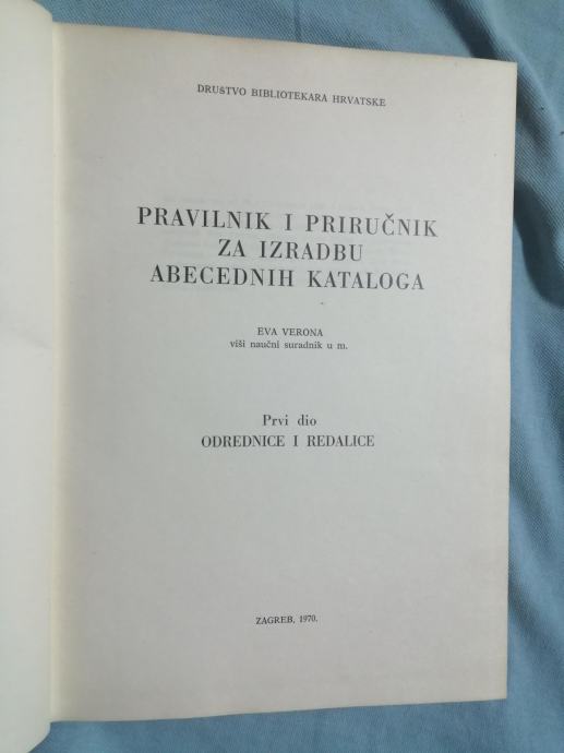 Eva Verona – Pravilnik i priručnik za izradbu abecednih kataloga 1. dio : Odrednice i redalice