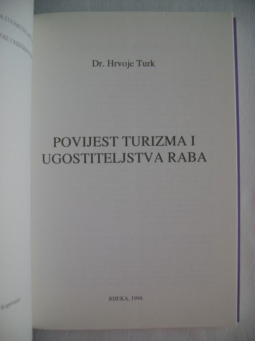 Hrvoje Turk - Povijest turizma i ugostiteljstva otoka Raba - izdavač Povijesno društvo Rijeka, 1994. godine, 17 x 24 cm, meki uvez sa preklopom, 99 stranica, bogato ilustrirano.