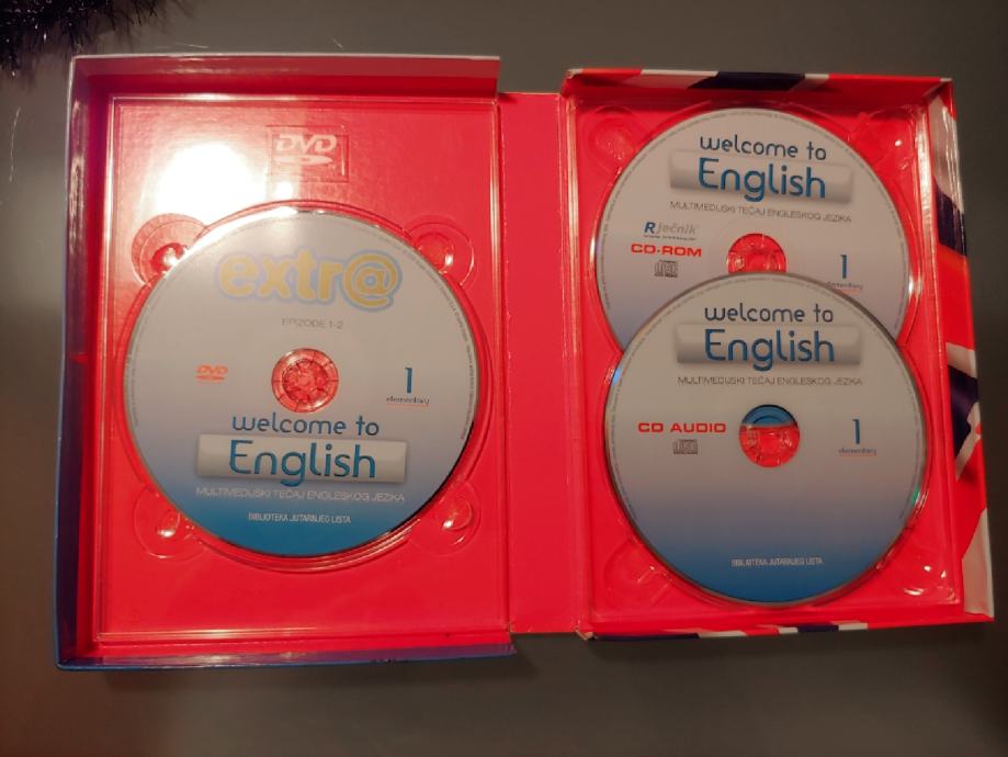 Interaktivni tečaj engleskog jezika Extr@, početna razina. U super stanju. Sadrži audio CD, DVD, CD ROM i knjigu.