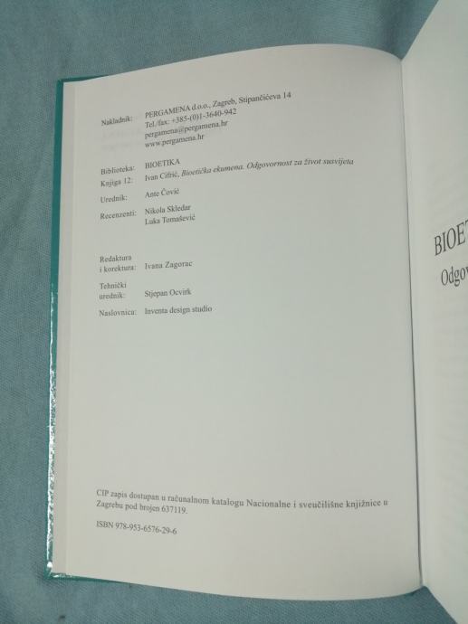 Ivan Cifrić – Bioetička ekumena : Odgovornost za život susvijeta