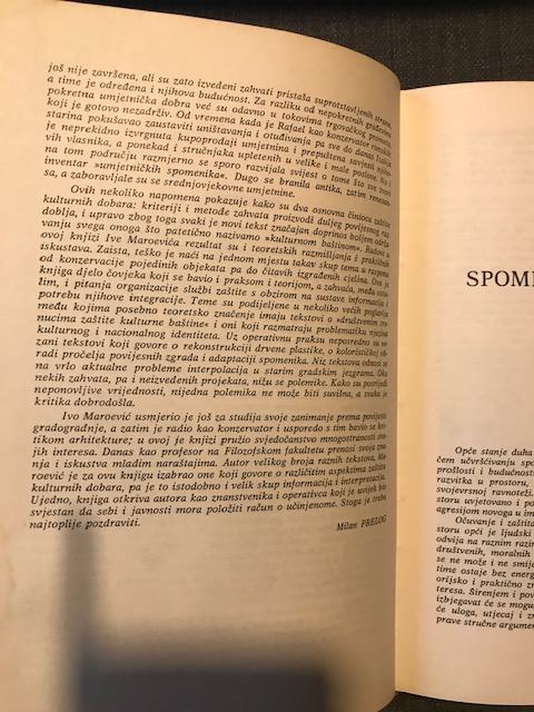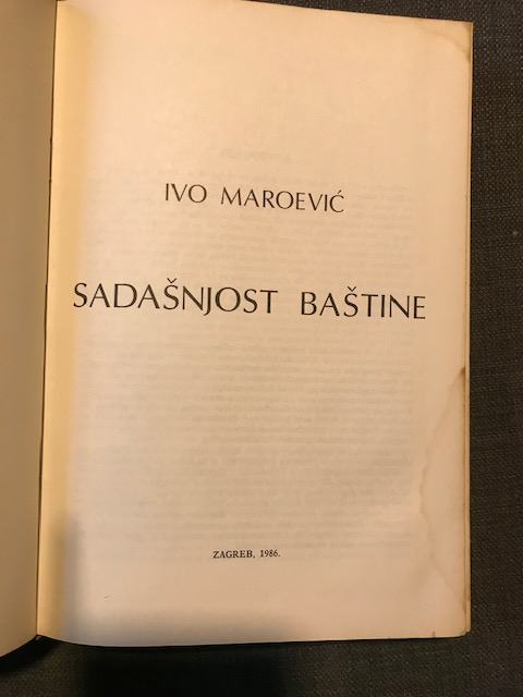 Ivo Maroević, Sadašnjost baštine, 1986.