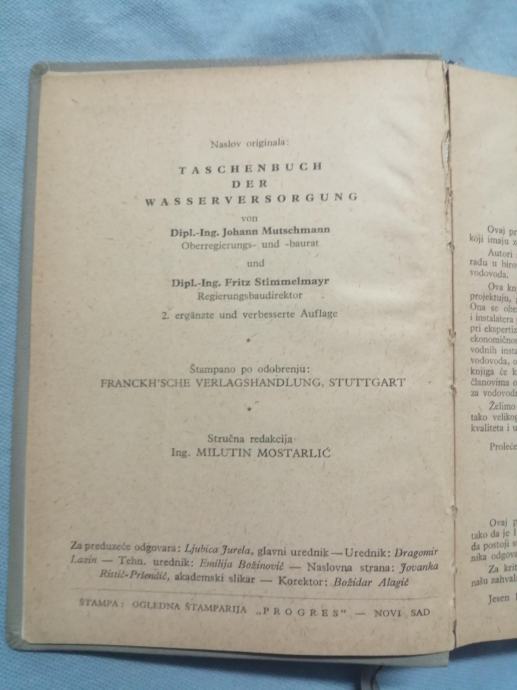J. Mučman i F. Štimelmair – Snabdevanje vodom : Priručnik (AA36)