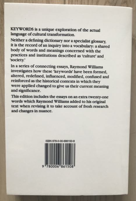 Keywords: A Vocabulary of Culture and Society, Raymond Williams