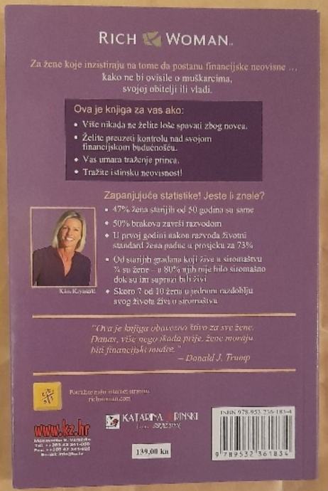 Prodajem knjigu Kim Kiyosaki "Bogata žena – knjiga o investiranju za žene", s podnaslovom "Zato što mrzim kad mi se govori što da radim!". Knjiga ima predgovore Roberta Kiyosakija i Sharon Lechter. Radi se o popularnom naslovu koji govori o financijskoj neovisnosti i investiranju.