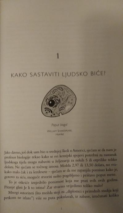 „Životni vijek provodimo unutar te tople, titrave mase mesa, a pritom je u potpunosti uzimamo zdravo za gotovo. Koliko nas zna gdje je slezena i što ona radi? Ili razliku između tetiva i ligamenata? Ili što to čine limfni čvorovi? Što mislite, koliko puta na dan trepnete očima? Petsto? Tisuću? Naravno, nemate pojma. Dakle, četrnaest tisuća puta svaki dan – toliko puta da su vam, u budnome stanju, oči zatvorene dvadeset tri minute. Ipak, o tome ne morate razmišljati zato što svake sekunde svakoga dana vaše tijelo izvodi doslovno nezamisliv broj zadaća – kvadrilijun, nonilijun, kvindecilijun, vigintilijun (riječ je o stvarnim vrijednostima); u svakom slučaju, broj koji nadilazi maštu – i ne traži ni trenutka vaše pozornosti." -Bill Bryson