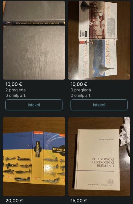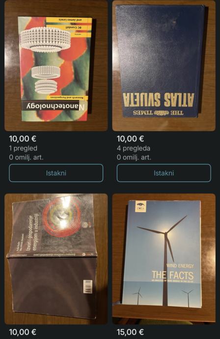 Prodajem komplet knjiga u Velo dobrom stanju. Knjige su na Hevatskom engleskom i njemačkom jeziku. Prodaje se stručna literatura, katalozi o tipovima vojnih zrakoplova, atlasi, retrospektive geografskih obilježja kao i povijesne knjige o povijesti civilizacija. Cijene knjiga su na slikama za svaku knjigu individualno