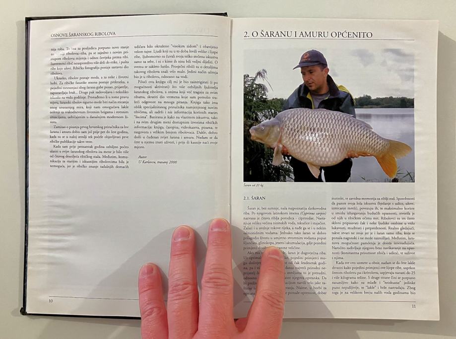 Ovaj jedinstveni specijalizirani ribolovni priručnik o lovu šarana prvi puta je izdan 2001. kao prvi takve vrste u Hrvatskoj, i vrlo brzo je rasprodan. Novo i nadopunjeno izdanje je potpuno tekstualno modernizirano (neka poglavlja dorađena, neka kompletno ponovno napisana, a neka naknadno dodana), i u vrlo bogatoj opremi (tvrde plastificirane korice, kompletno sve stranice u koloru, oko 280 slika, crteža i akvarela u boji…). Knjiga nudi veliki broj raznovrsnih informacija o ribolovu šarana, ovoj kod nas u zadnje vrijeme vrlo popularnoj grani sportskog ribolova i velik broj odgovora na mnoga pitanja vezana uz ovaj sport. Knjiga ima 12 poglavlja od kojih su naj važnija: o šaranu i amuru općenito, pronalaženje riba, šaranski pribor, taktike i tehnike lova, mamci za šarane, vrijeme i sezona lova, moderni šaranski trikovi, ribička fotografija, etika, zapisi s Kupe i slično.